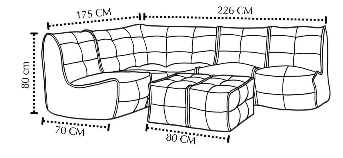 A blend of premium foam and high-density beads, developed with Dunlop technology and repurposed materials for a more sustainable, structured sit.