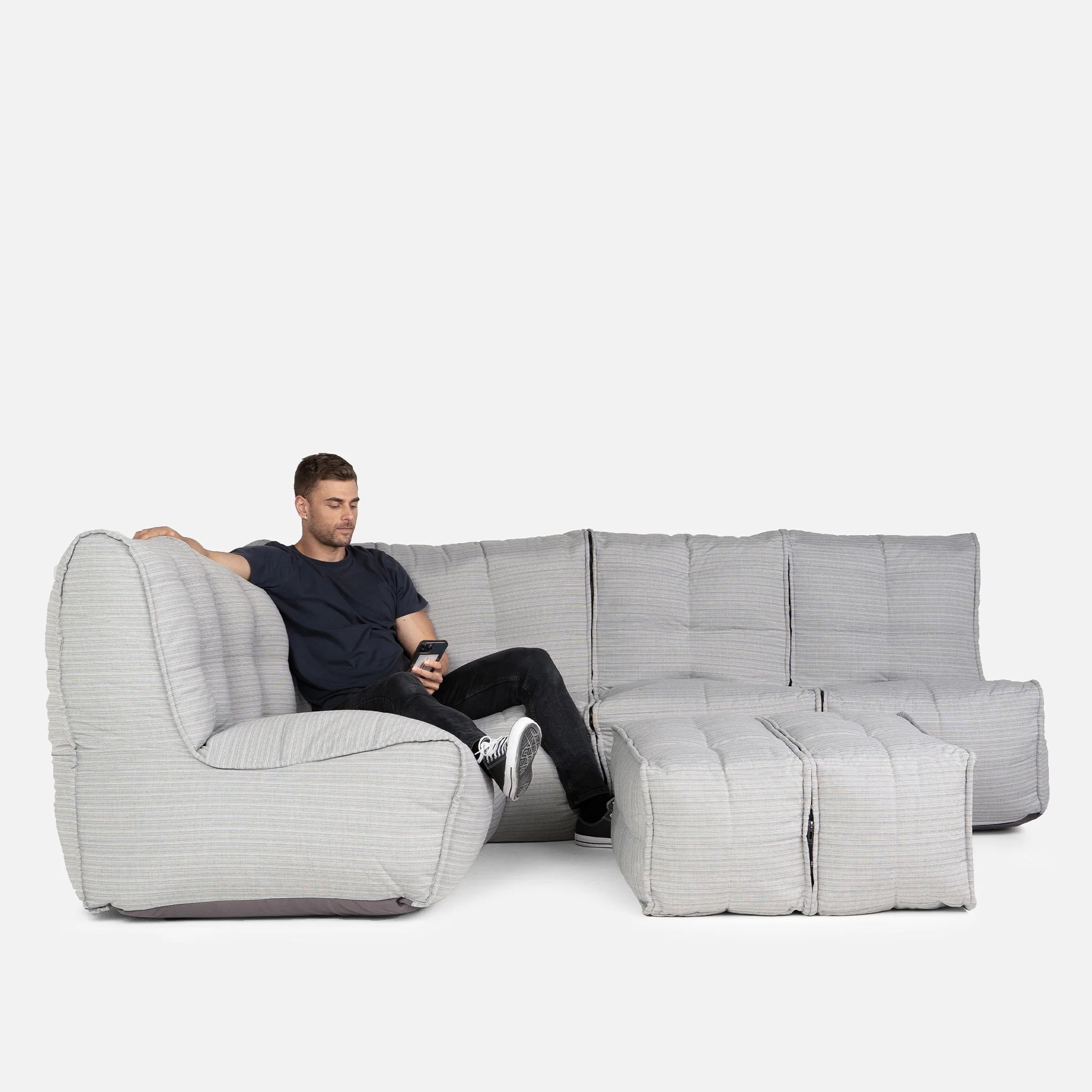 Experience sophisticated lounging both indoors and outdoors with the Ambient Lounge®. The Mod 5 Living Lounge is a 4-seater weatherproof couch that can instantly elevate your garden, backyard or patio. Arrange however you want arround a beautiful Twin Ottoman whether you're hosting a barbecue, an outdoor movie night or a pool party.