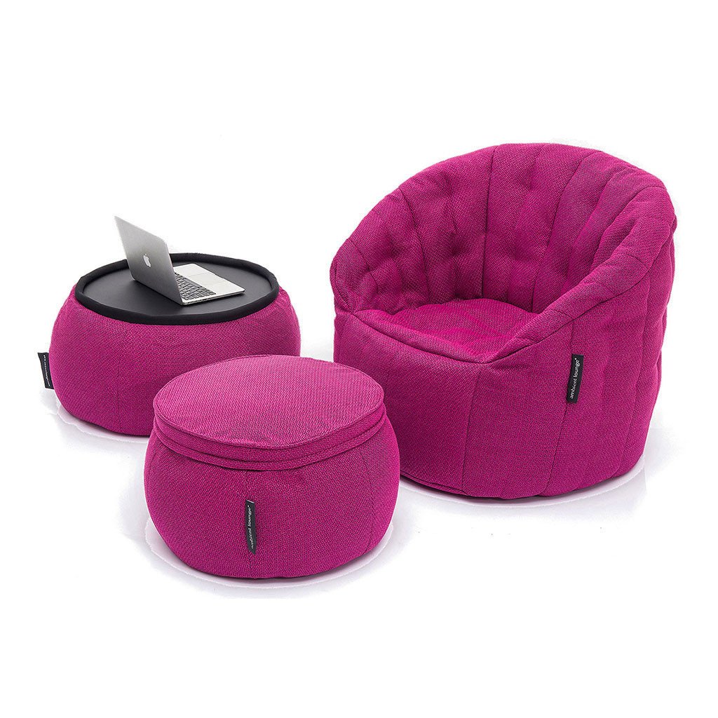 Ob Heimkino, Partys, gemütliche Rückzugsorte oder einfach nur entspanntes Beisammensein mit ein paar Drinks im Wohnzimmer – das Contempo-Paket (in Sakura Pink) bietet alles! Das Butterfly-Sofa mit seiner strukturierten, gesteppten Form lädt zum Wohlfühlen ein. Kombinieren Sie es mit dem Wing-Hocker mit abnehmbarem Memory-Schaum -Kissen für unzählige Entspannungsmöglichkeiten. Der Versa-Tisch mit seiner stabilen Acrylplatte ist ideal, um Laptop, Getränke oder eine Schüssel Nudeln in bequemer Reichweite abzustellen – für ultimativen 5-Sterne-Luxus an jedem Tag der Woche.