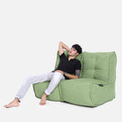 The Lime Citrus twin couch can be used as two single-seaters or a roomy Twin Couch . The fabric is washable and extremely durable. The Funnelweb™ system allows you to top up your couch to your own individual comfort level whenever you like.