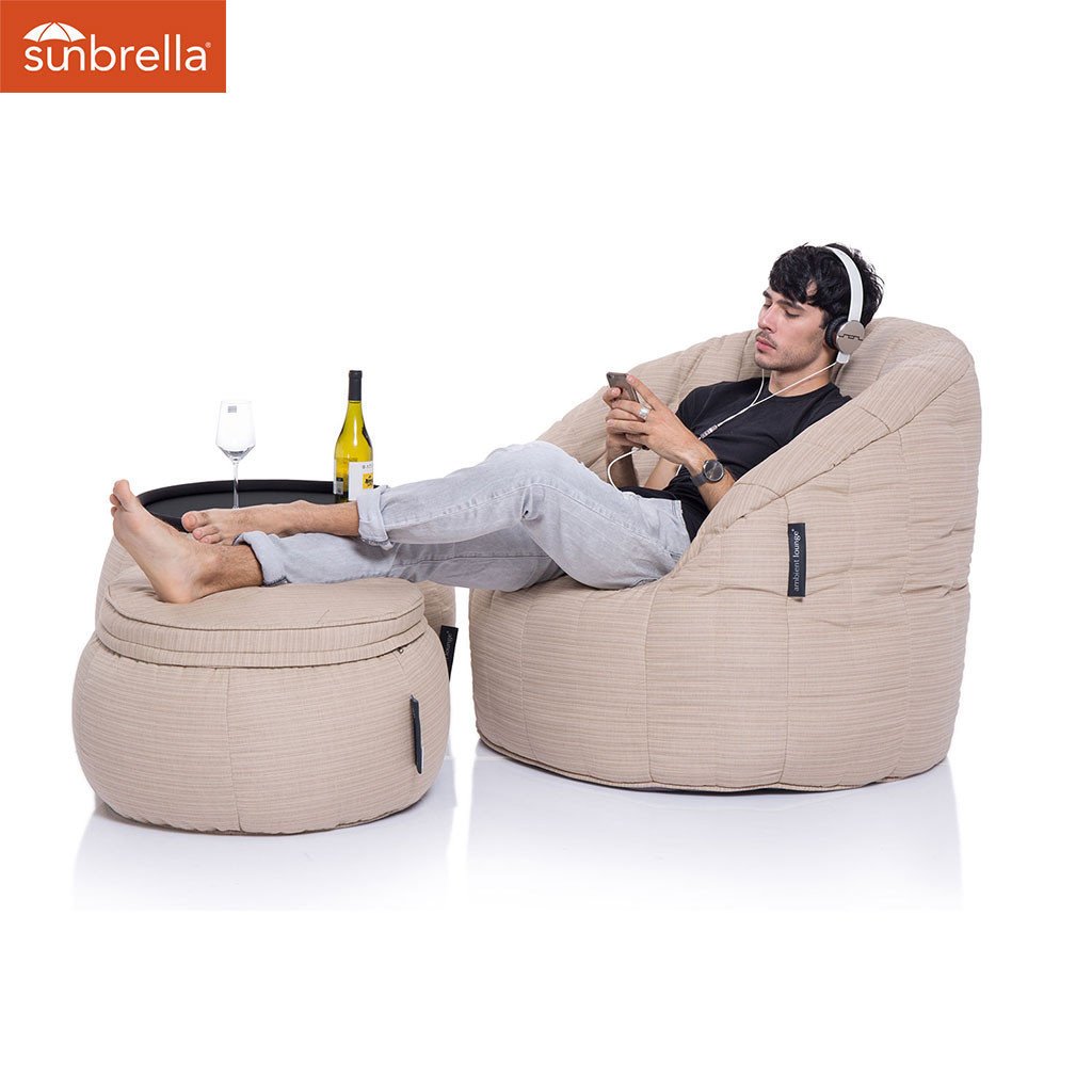 Che siate appassionati di home cinema, amanti delle feste, alla ricerca di spazi relax o semplicemente desiderosi di rilassarvi in ​​salotto con un drink in mano, il pacchetto Contempo (in Mudhoney Dune - Sunbrella) ha tutto ciò che vi serve! Il divano Butterfly, con il suo supporto strutturato e trapuntato, è un vero e proprio bozzolo di comfort. Abbinatelo al pouf Wing con il suo cuscino in memory foam rimovibile per infinite possibilità di relax. Nessun set sarebbe completo senza il tavolino Versa , con la sua stabile superficie in acrilico, ideale per appoggiare un laptop a portata di mano, bevande o una ciotola di noodles, per un lusso da weekend a 5 stelle ogni giorno della settimana.
