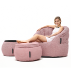 Che siate appassionati di home cinema, amanti delle feste, alla ricerca di spazi relax o semplicemente desiderosi di rilassarvi in salotto con un drink in mano, il pacchetto Contempo (in Raspberry Polo) ha tutto ciò che fa per voi! Il divano Butterfly, con il suo supporto strutturato e trapuntato, è un vero e proprio bozzolo di comfort. Abbinatelo al pouf Wing con il suo cuscino in memory foam rimovibile per infinite possibilità di relax. Nessun set sarebbe completo senza il tavolino Versa , con la sua stabile superficie in acrilico, ideale per appoggiare un laptop a portata di mano, bevande o una ciotola di noodles, per un lusso da weekend a 5 stelle ogni giorno della settimana.