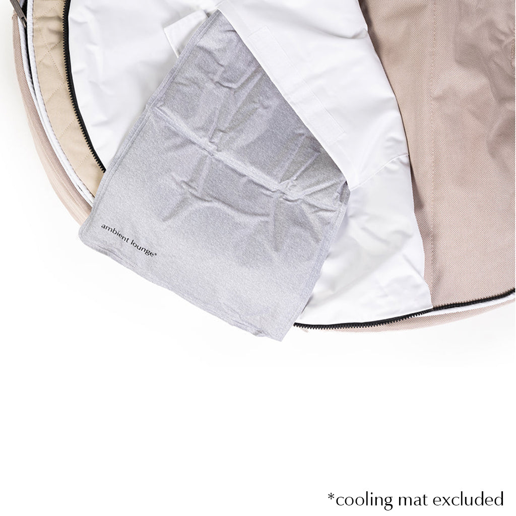 In caso di temperature molto elevate o all'aperto, si consiglia di rimuovere la parte superiore in pelliccia sintetica: la base risulterà fresca e confortevole per il vostro animale domestico. In alternativa, in ambienti interni, è possibile posizionare degli impacchi di gel refrigerante sotto la base in pelliccia sintetica per aiutare il vostro cane a rinfrescarsi.