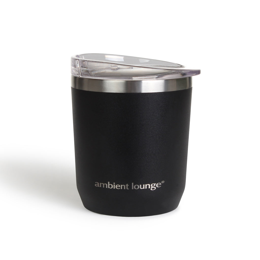 Keep your drinks hot or cold for over 3 hours. Get this eco-friendly insulated cup by ambient lounge® in a stunning and sleek black colour. This features a contemporary embossed icon logo, easy clean surface, and secure drinking lid perfect for sipping on the go, without spillage.