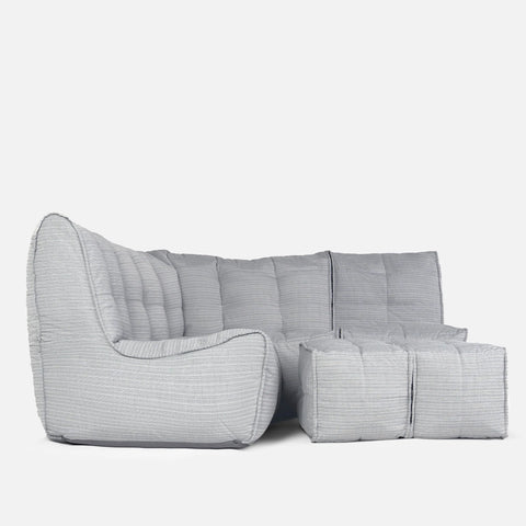Made from a durable hard-wearing but soft outdoor fabric that has multi-layer aesthetic qualities and supreme tactility. Suitable for anything from commercial design projects, hotels, living rooms and kids playrooms.